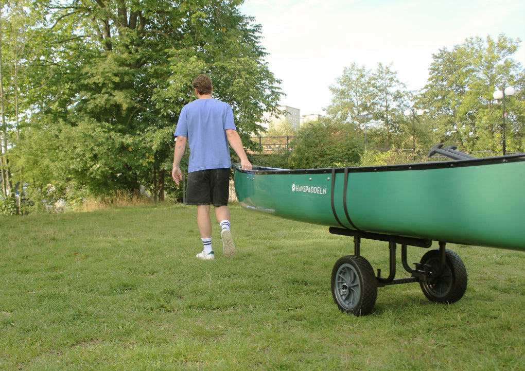 Der Kanukarren von Havspaddeln ist ein großer und robuster Wagen für Kanus. Mit großer Tragfähigkeit macht dieser Wagen es einfach, Ihr Kanu an neue Orte zu bringen.
