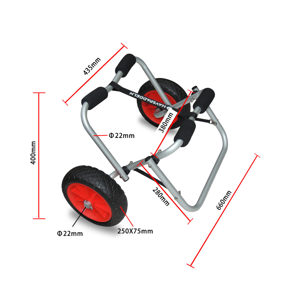 Ein großer und vielseitiger Kajakwagen aus Aluminium. Speziell für breitere Kajaks entwickelt, ermöglicht er einen reibungslosen und stabilen Transport zum und vom Wasser. Dank der pannensicheren Reifen können Sie Ihr Kajak in jedem Gelände transportieren, ohne sich jemals Sorgen um einen platten Reifen machen zu müssen.