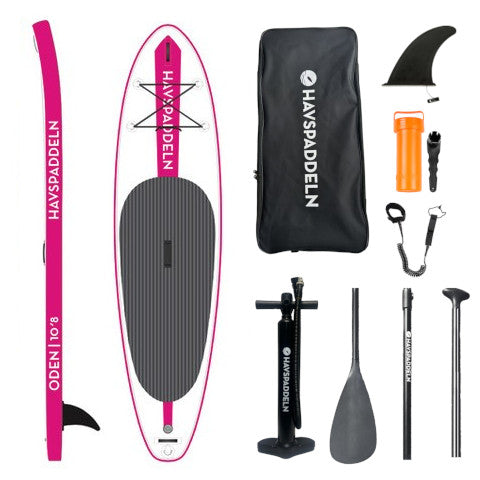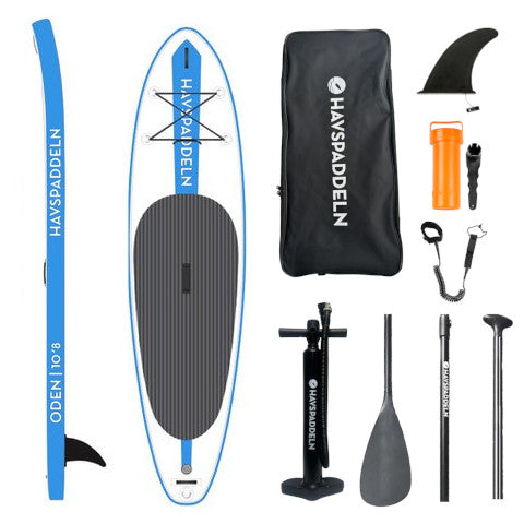 In the Havspaddeln SUP package Oden 10'8", we have put together everything you need to get started with SUP paddling – at a great price! A stable and easy-to-paddle SUP board with maximum rigidity, a lightweight aluminium paddle, a pump (double-action), a fin, a foot leash, a repair kit, and a backpack.