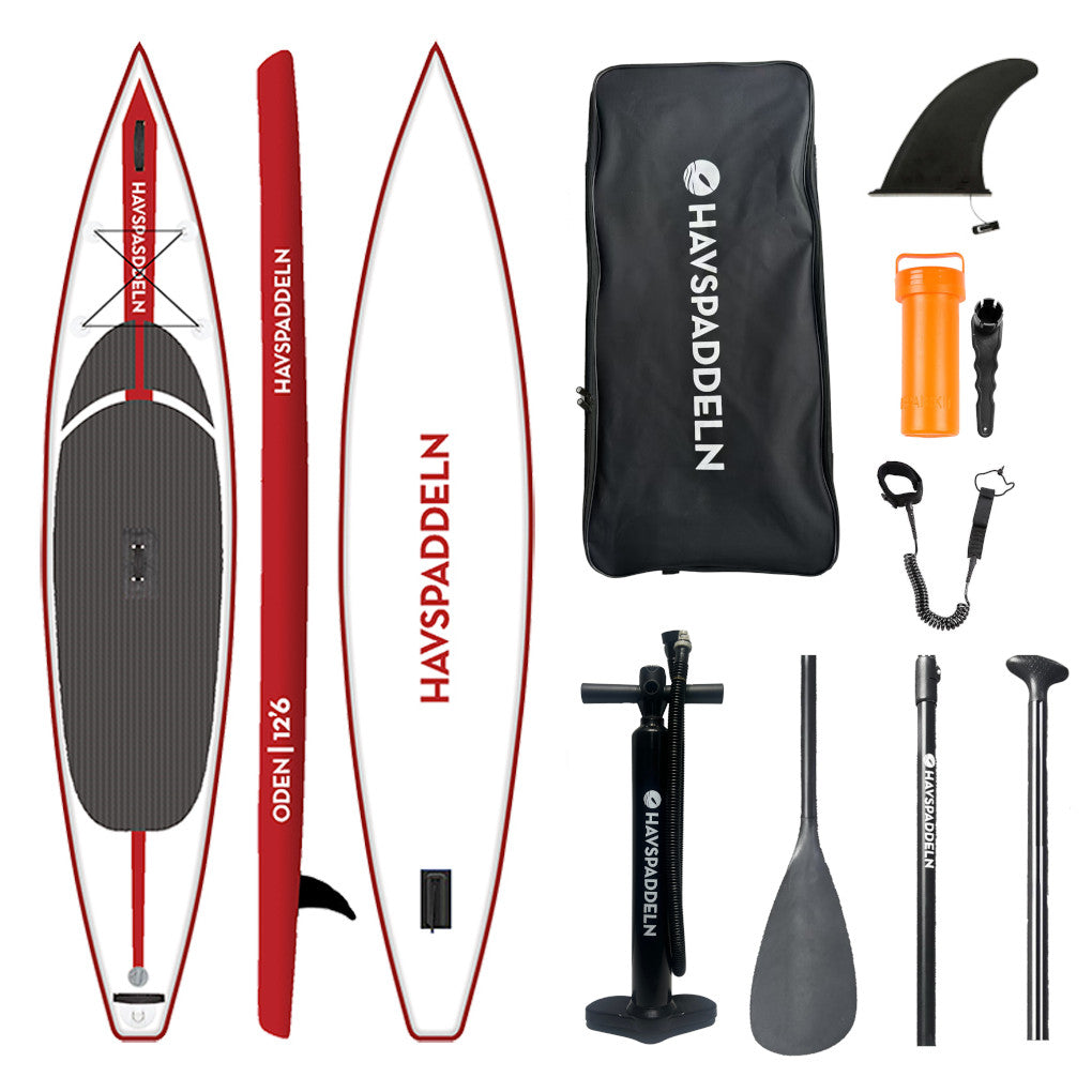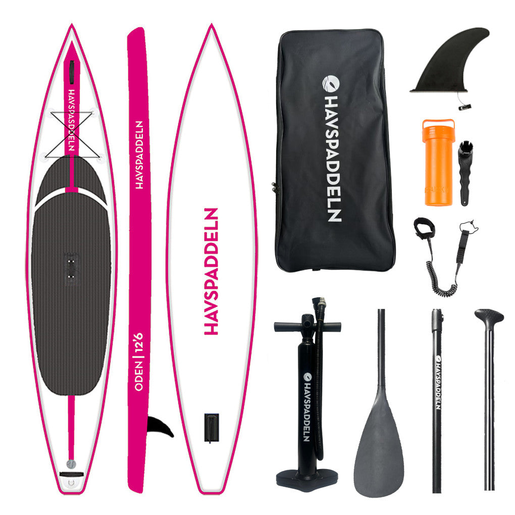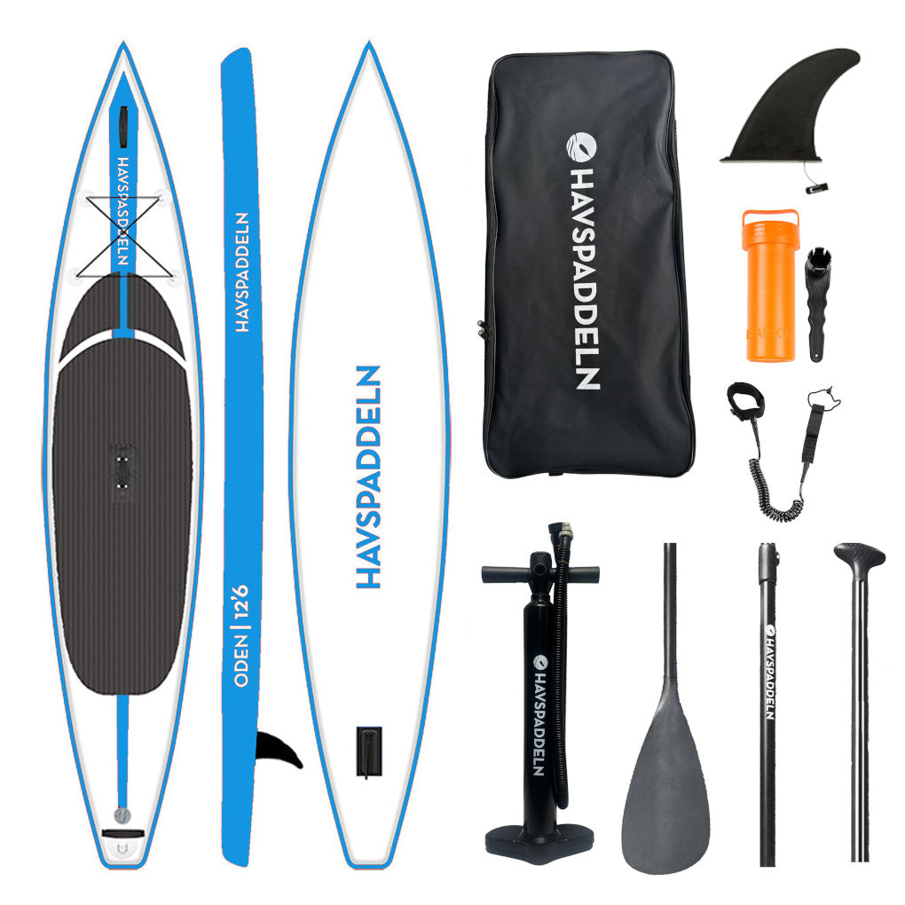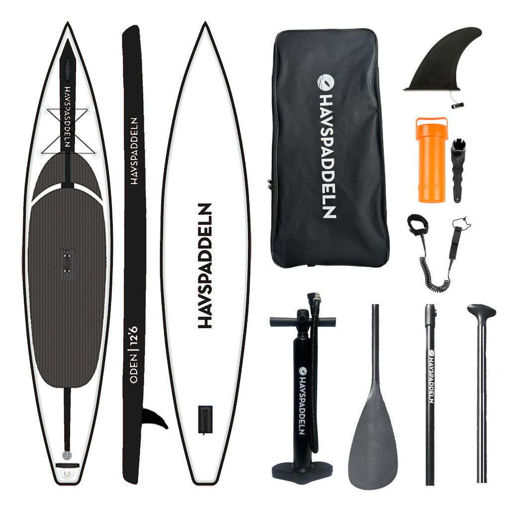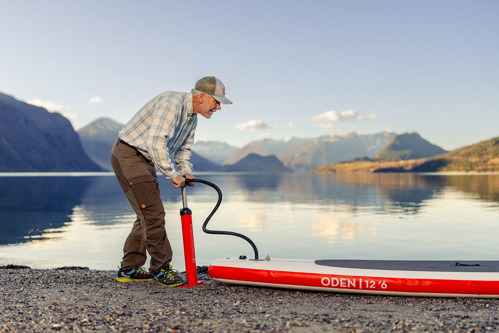 Oden 12'6″ is a sporty paddleboard model that belongs to the faster type of inflatable paddleboards in Sweden today. These boards have a very wide range of uses – they can be used as training equipment or for yoga, but also for those occasions when you just want to glide around with your friends.