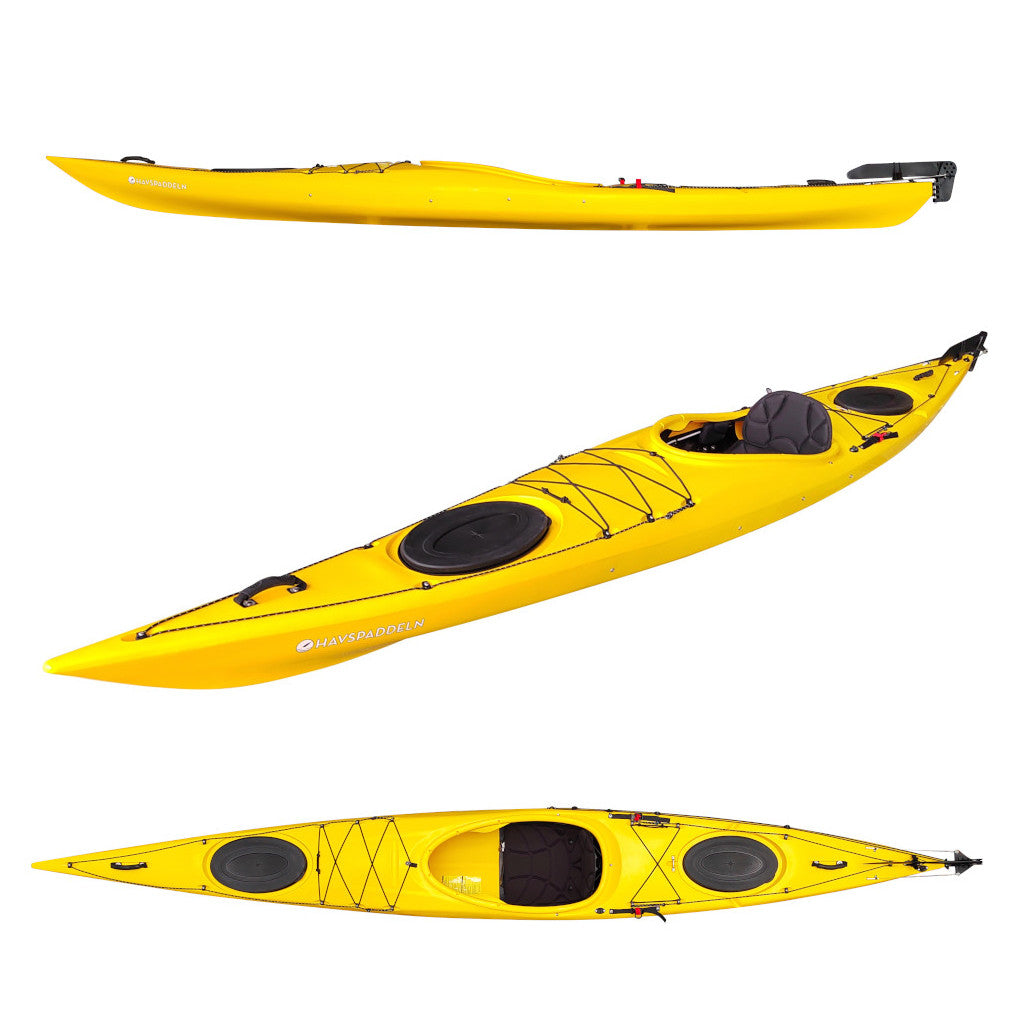 Die Rumpfform des Havspaddeln Jokkmokk macht das Kajak stabil und wendig. Dank der Cockpitöffnung von 87 cm ist der Ein- und Ausstieg sehr einfach. Das Kajak verfügt über einen komfortablen, verstellbaren Sitz und wird mithilfe der leicht verstellbaren Fußstützen über das Ruder gesteuert. Das Ruder wird über die Ruderleine an der rechten Seite des Kajaks gehoben und gesenkt.