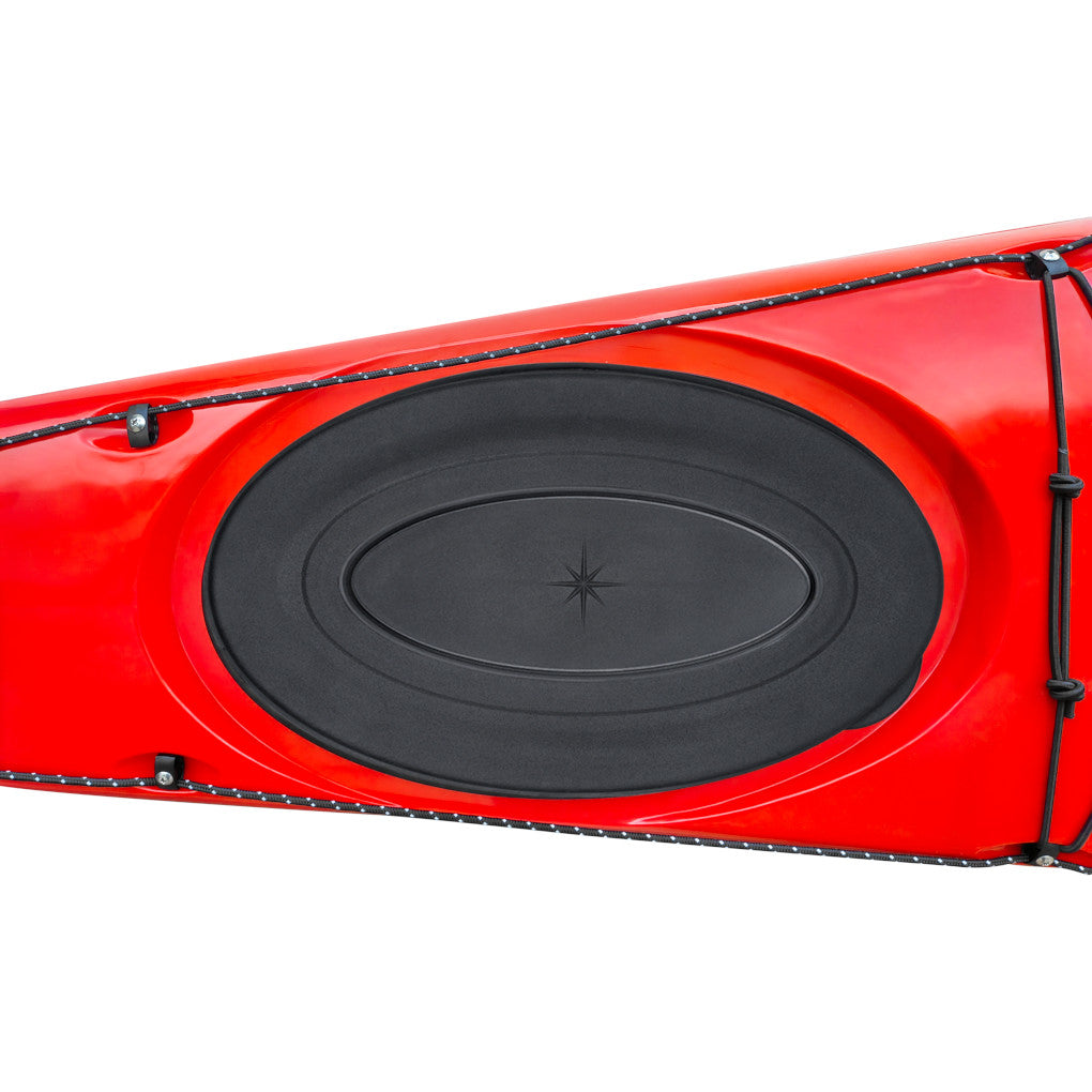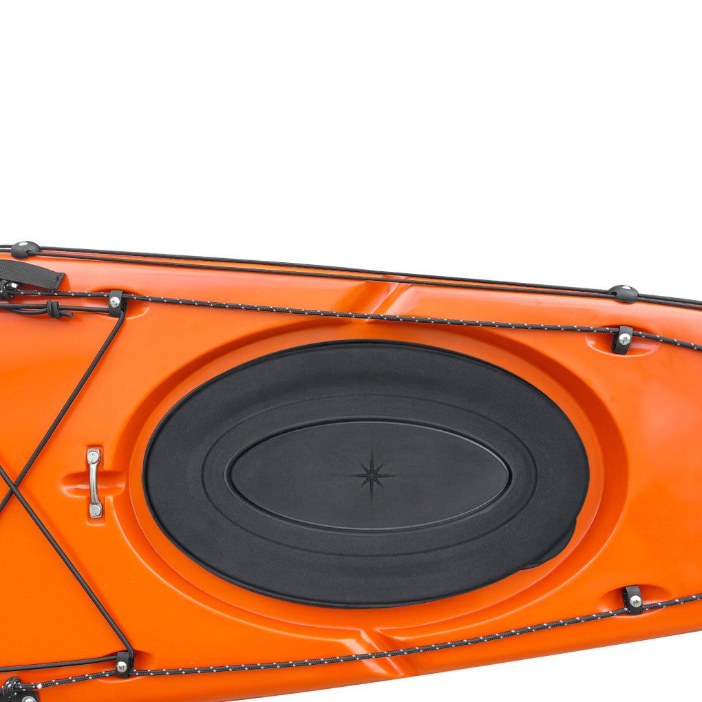 Das Kajak verfügt über zwei große Stauräume in den Luken und an Deck. Es gibt zwei große Luken, eine im Bug und eine im Heck. Vor dem Cockpit befinden sich elastische Bungee-Seile zur Befestigung eines wasserdichten Packsacks oder einer Wasserflasche. Im Cockpit können Sie Ihre Oberschenkel bequem an den gepolsterten Schenkelstützen abstützen, um das Kajak besser zu kontrollieren. Dieses Kajak ist sehr stabil.